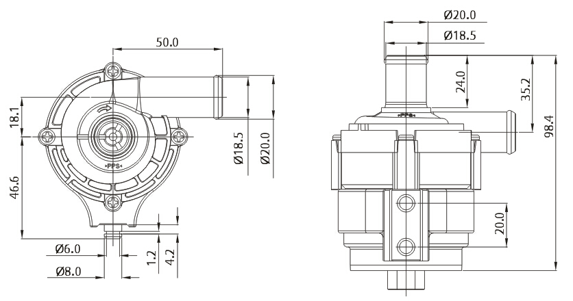 5.進(jìn)出水口直徑:20mm