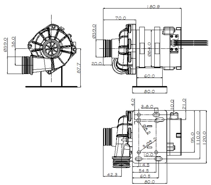 | 額定電壓 | 使用電壓范圍 | 額定電流 | 最大揚程 | 最大流量 | 額定功率 | 最大噪音 |