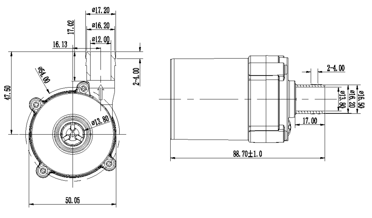 | 額定電壓 | 使用電壓范圍 | 額定電流 | 最大揚程 | 最大流量 | 額定功率 | 最大噪音 |